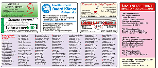 Hinweis: Für eine Detailansicht der Karte, der Anzeigen und der Strassenverzeichnisse klicken Sie auf das gewünschte Feld.